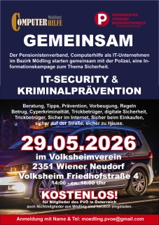 Der Pensionistenverband, Computerhilfe als IT-Unternehmen im Bezirk Mödling starten gemeinsam mit der Polizei, eine In-formationskampage zum Thema Sicherheit.