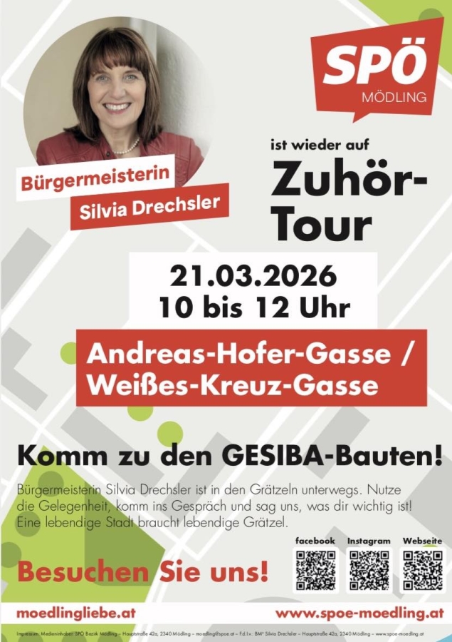 Die Zuhörtour 2026 startet diesen Samstag von 10:00 bis 12:00 bei den Gesiba Bauten (Andreas Hofer Gasse / Weißes Kreuz Gasse)